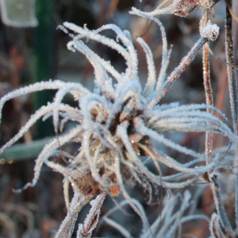 Clematis integrifolia Quarina duftet leicht und hält sehr gut als Schnittblume. Bienenweide!